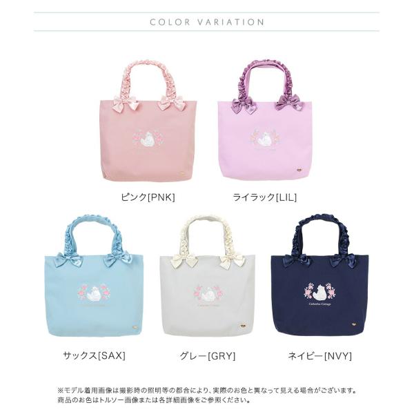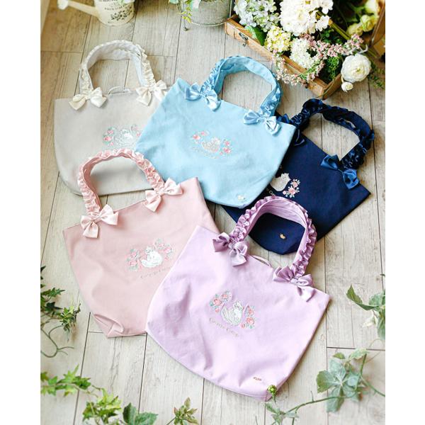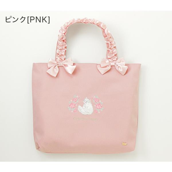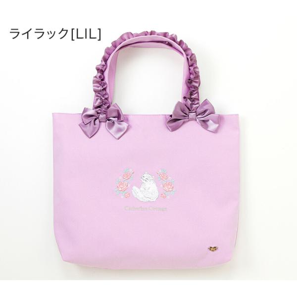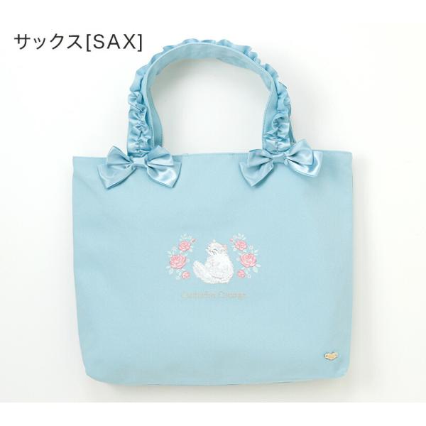 目玉セール|猫刺繍レッスンバッグ 女の子 フリルハンドル リボン 幼稚園 保育園 小学生 手提げ 絵本バッグ マチ付き 刺繍入り かばん キャサリンコテージ TAK