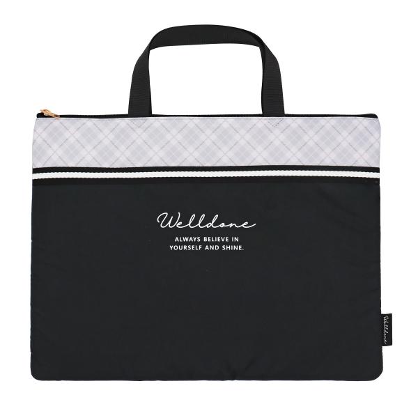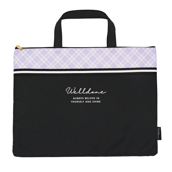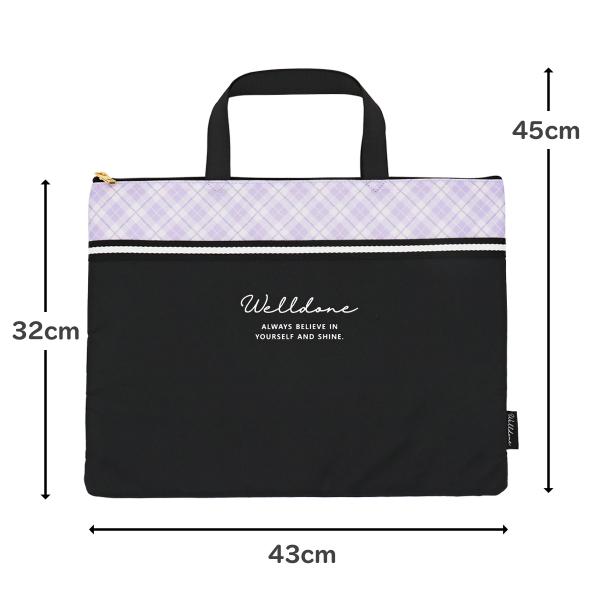 レッスンバッグ ファスナー付き チェック×ロゴ (C24342) 軽量 レッスンバック 手提げ お稽古バッグ 女の子 小学生 小学校 高学年 キッズ 子供 おしゃれ