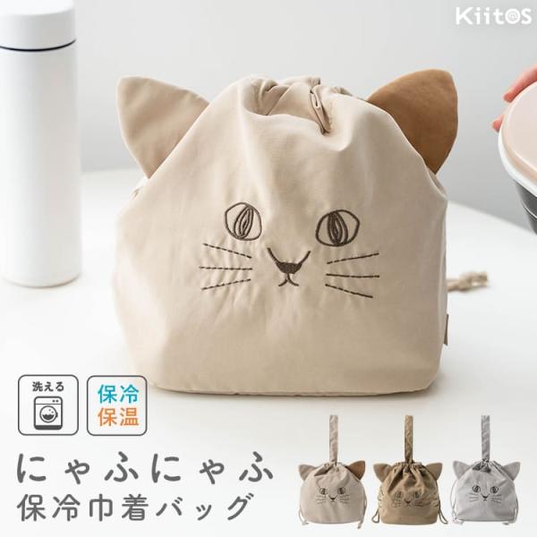 ランチバッグ 保冷 保温 巾着 猫 おしゃれ かわいい にゃふにゃふ 洗える ギフト 弁当袋 大人