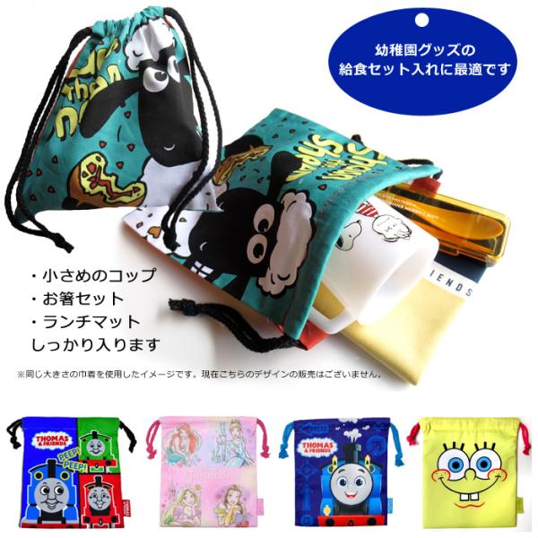 巾着 巾着袋 きんちゃく 給食袋 キャラクター コップ袋 マチ無し 通園 通学 入学 卒業 卒園 祝い 新学期 子ども会 景品 賞品 プレゼント ダブルスリー