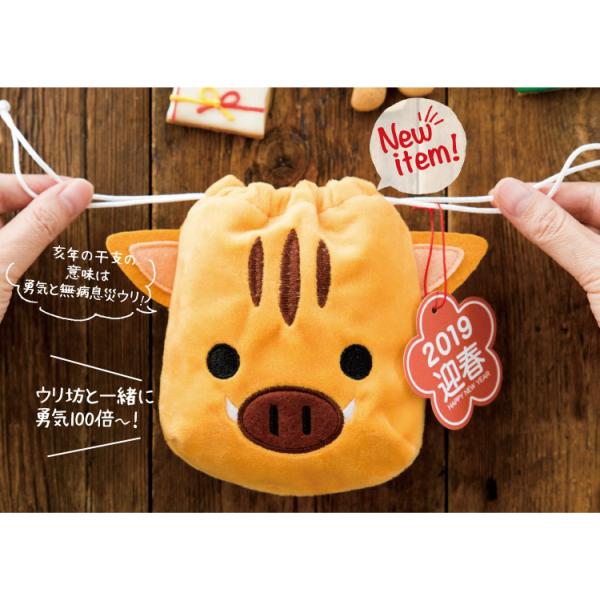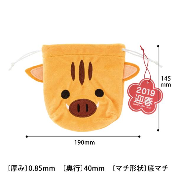 イノシシ アニマル 巾着 梅の形の迎春タグ付き 動物 アニマル 誕生日 お祝い ぬいぐるみ 巾着バッグ タッグ付き キャラクター