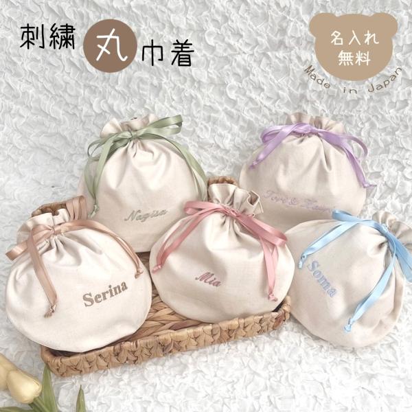 名入れ刺繍丸巾着 名入れ無料 巾着袋 巾着ポーチ 小物入れ おやつ入れ 携帯ポーチ 旅行バッグ 化粧ポーチ バッグインバッグ ギフト 推し活 オタ活