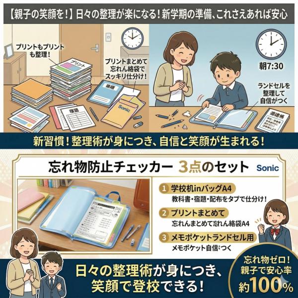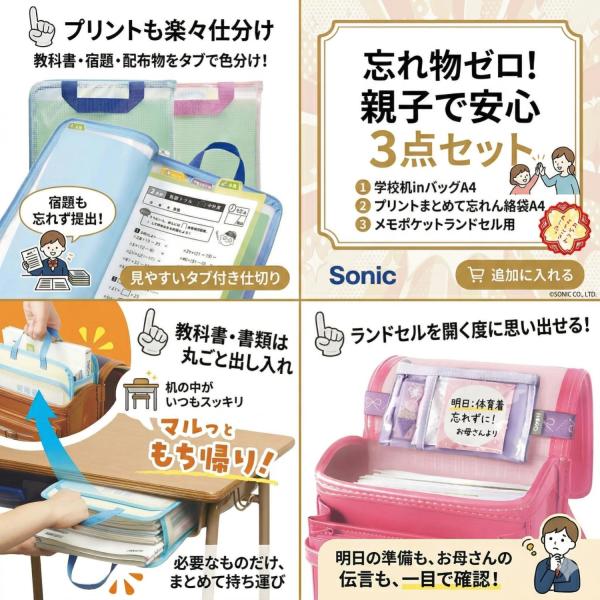 小学生 忘れ物防止チェッカー 3点セット プリントまとめて忘れん絡袋A4 学校机inバッグA4マルッともち帰り ランドセルメモポケット ランドセル時間割