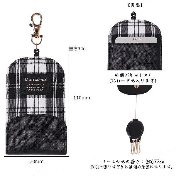 キーケース チェック 柄 キーホルダー 収納 伸縮 防犯 伸び縮み カギ 鍵 紛失防止 女の子 小学生 メール便送料無料