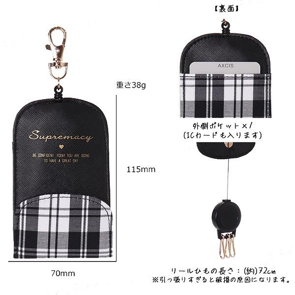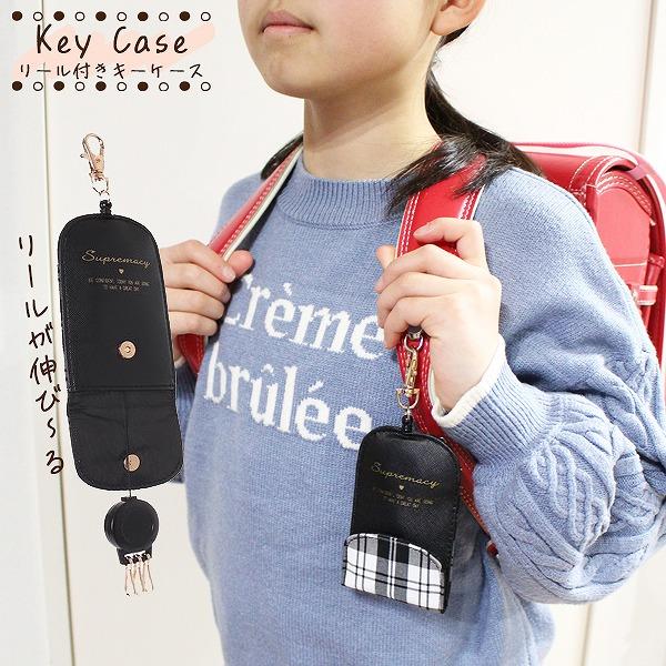 キーケース チェック 柄 キーホルダー 収納 伸縮 防犯 伸び縮み カギ 鍵 紛失防止 女の子 小学生 メール便送料無料