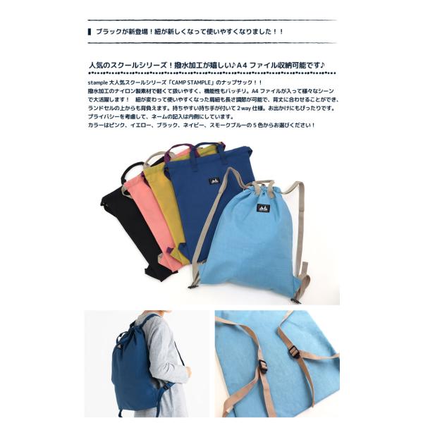 camp stample ウォッシュドナイロンナップサック スタンプル ナップサック ナイロン 通園 通学 キッズ 男の子 女の子 小学校 ランドセルの上から おしゃれ 63008