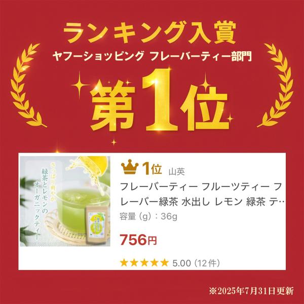 フレーバーティー フルーツティー フレーバー緑茶 水出し レモン 緑茶 ティーバッグ オーガニック 有機栽培 国産100% 無添加 山英 3g 12入 2袋