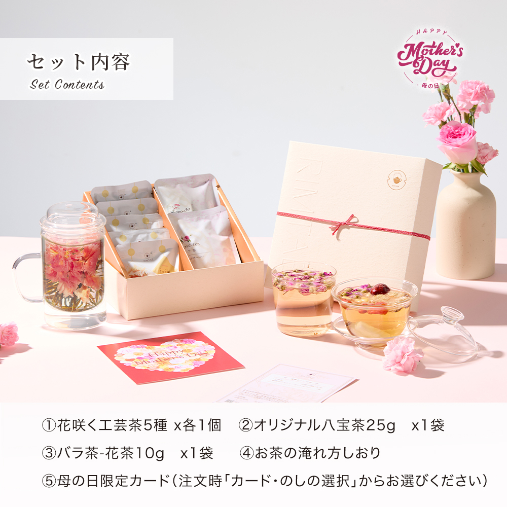 母の日 カーネーション 工芸茶 花咲くお茶 リムテー 花茶5種 八宝茶 バラ茶 花花セット 中国茶 ギフト 詰め合わせ 誕生日 プレゼント