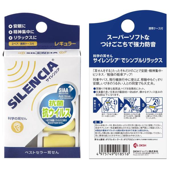 科学の耳栓 サイレンシア 大人用 2組入り ケース付き 抗菌仕様