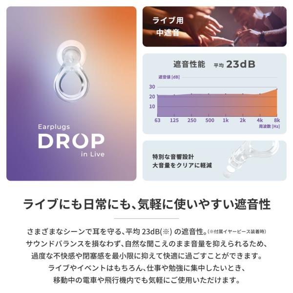 ラディウス radius EP-D20 ライブ用イヤープラグ DROP in Live|耳栓 イベント コンサート 遮音 聴覚保護 ディープマウントイヤーピース コード付き ケース付属