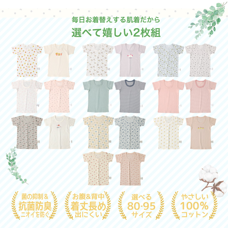 ベビー キッズ 肌着 半袖 2枚セット 抗菌防臭 綿100% コットン フライス 80-95cm インナー 下着 子供服 80 90 95 ベビーウェア 男の子 女の子