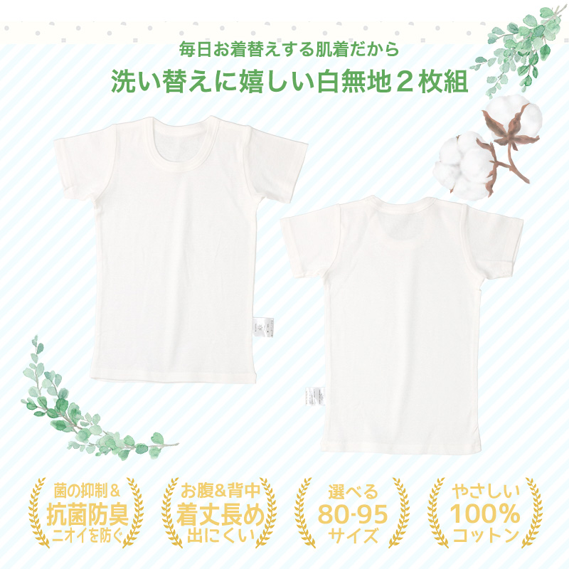 肌着 ベビー キッズ 2枚セット 2枚組 フライス 抗菌防臭 丸首 クルーネック 半袖 アンダーウェア 子供 ( 80-95cm ) 80cm 90cm 95cm オフホワイト 白 無地 キッズ