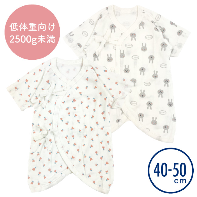 ベビー服 赤ちゃん 服 ベビー コンビ肌着 低出生体重児 未熟児 女の子 うさぎ ウサギ 花柄 40 50 低体重コンビ肌着