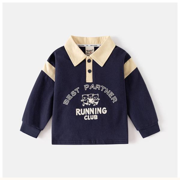 長袖 ポロシャツ 子供 キッズ ベビー服 ボダンダウン 幼稚園 保育園 通園着 可愛い 小学校 スクール 小学生 男の子 女の子 通学 バイカラー クマ柄 おしゃれ