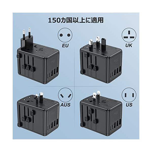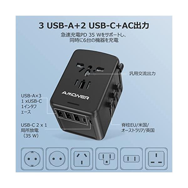 変換プラグ Amoner 海外電源変換アダプタ 急速充電 3 USB-Aポートと2 USB-Cポート付きと1*ACコンセント 4種セットACアダ