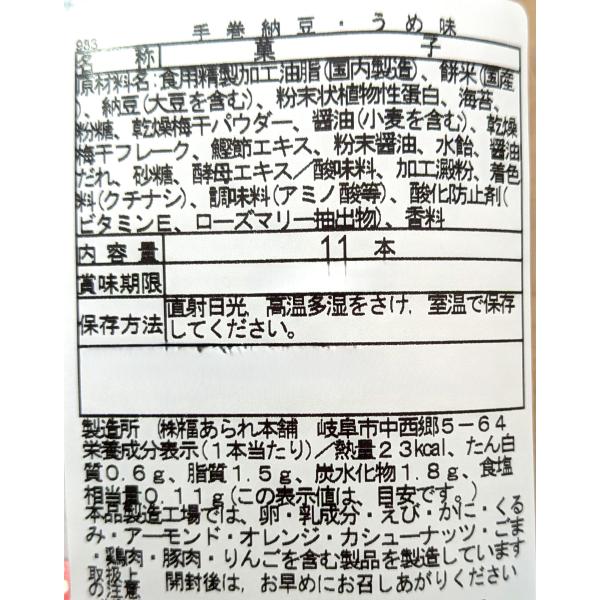 松福 手巻納豆 11個入り 【プレーン味・うめ味】 納豆あられ 乾燥納豆