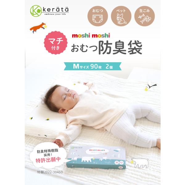 (ケラッタ) moshimoshi おむつ 防臭袋 M 2箱セット 臭わない 袋 におわない 消臭 オムツ うんち 赤ちゃん ペット 犬 猫 マチ付き