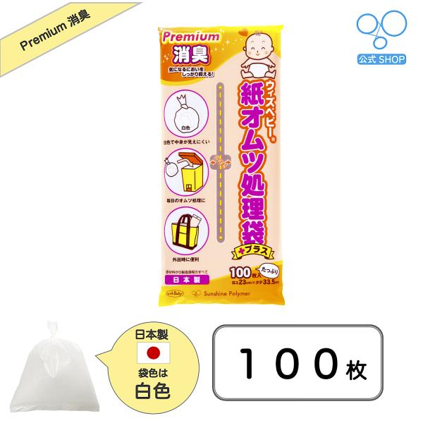 【公式】ウィズベビープレミアム 消臭紙オムツ処理袋 日本製 100枚入り 白色