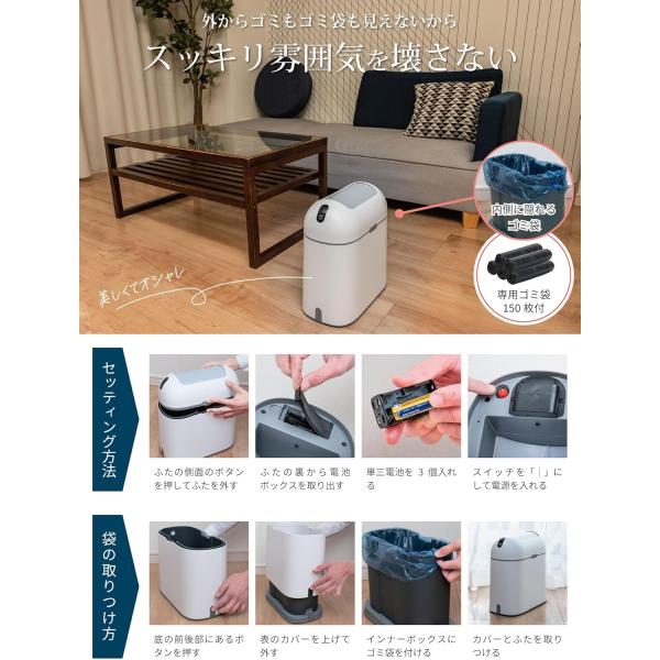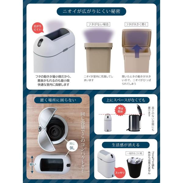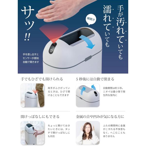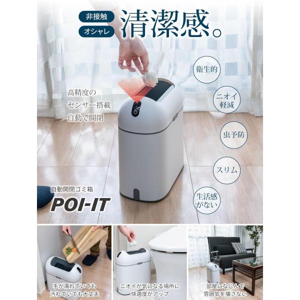 ゴミ箱 自動開閉 スリム 9L ホワイト/グレー センサー 自動ゴミ箱 蓋付き おしゃれ ペット 臭わない ポイット(ホワイト)