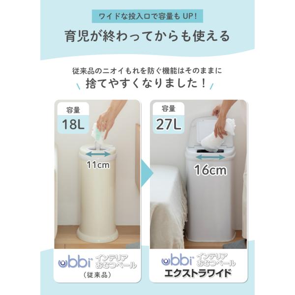 おむつ ゴミ箱 おむつポット Ubbi(ウッビー) インテリアおむつペール エクストラワイド 日本育児