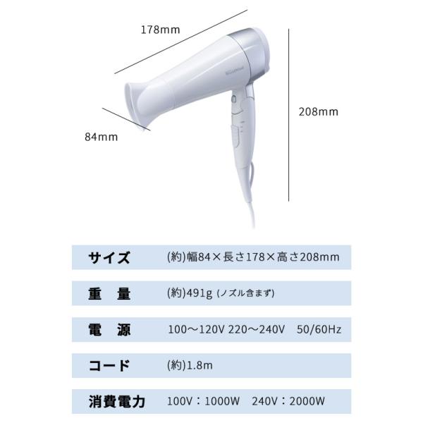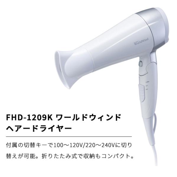 フカイ ドライヤー 海外対応 ワールドウィンド ヘアードライヤー FHD-1209K 海外旅行 100〜120V 220〜240V 冷風機能 Cタイプ変換プラグ付き (hi0a244)
