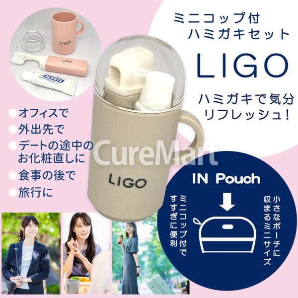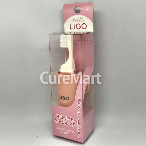 LIGO ミニコップ付 ハミガキセット +歯みがき粉4g ピンク LG500P 日本製 イケモトのブラシ 歯磨きセット 携帯用 歯ブラシセット トラベル コンパクト 池本