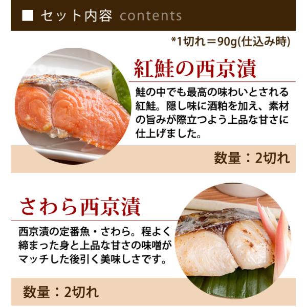 母の日 ギフト プレゼント 西京漬け おためしセット (紅鮭・サワラ 計4切入) 送料無料 贈り物 内祝【★母の日用でも配達日指定がない場合は最短発送★】