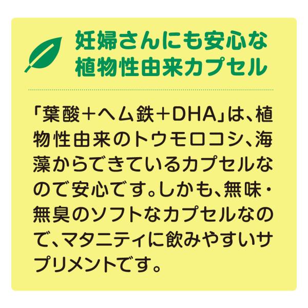 葉酸サプリメント マタニティサプリメント 葉酸+ヘム鉄+DHA 90粒入 無添加 3ヶ月分 植物由来カプセル使用 14粒入プレゼント中
