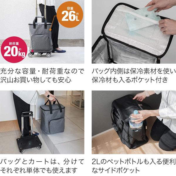 ショッピングカート 横押し 押し引き 2WAY 大容量 26L 保冷保温 5輪 キャスター付き お買い物キャリー 買い物カート 折りたたみ キャリー 1年保証 送料無料