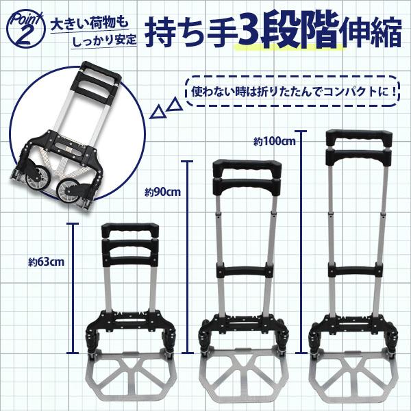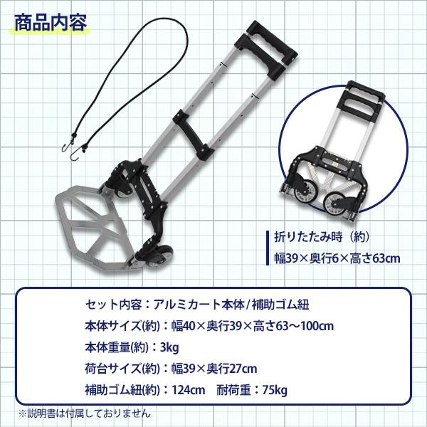 キャリーカート 耐荷重75kg 軽量 アルミ 折りたたみ 台車 ハンドキャリー 折りたたみ式カート ゴムバンド付属 アウトドア ショッピングカート