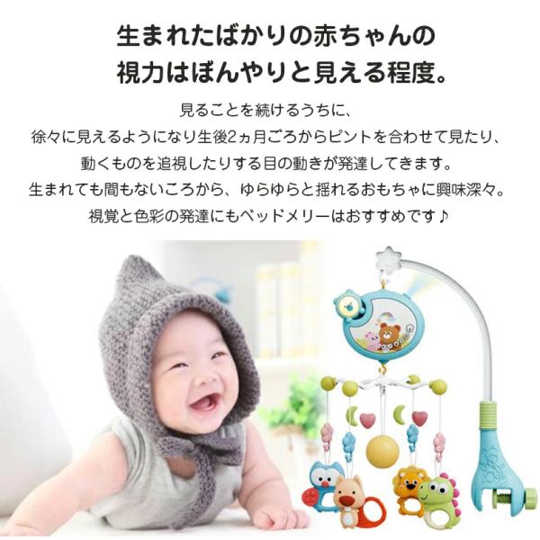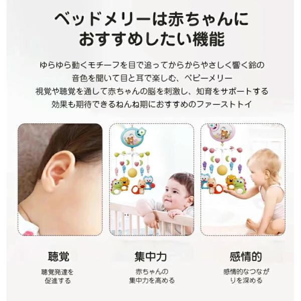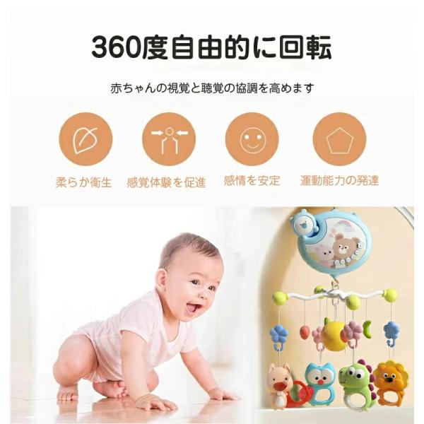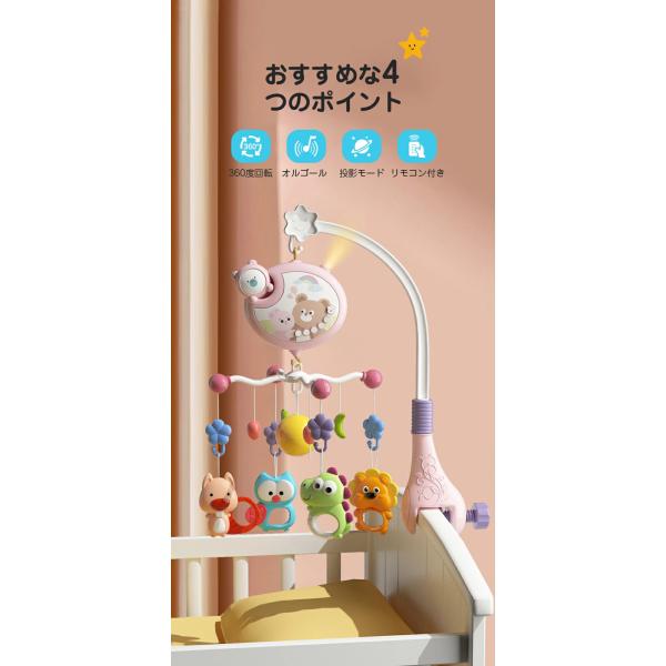 ベッドメリー アーム 回転 ベビーカーメリー オルゴール 床置き 手巻き ベビー メリー モービル 投影機能搭載 リモコン操作 赤ちゃん おもちゃ 寝かしつけ用寝具