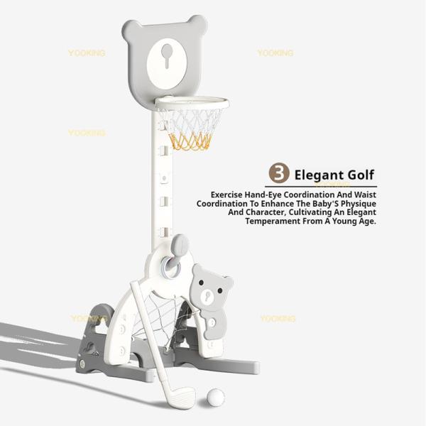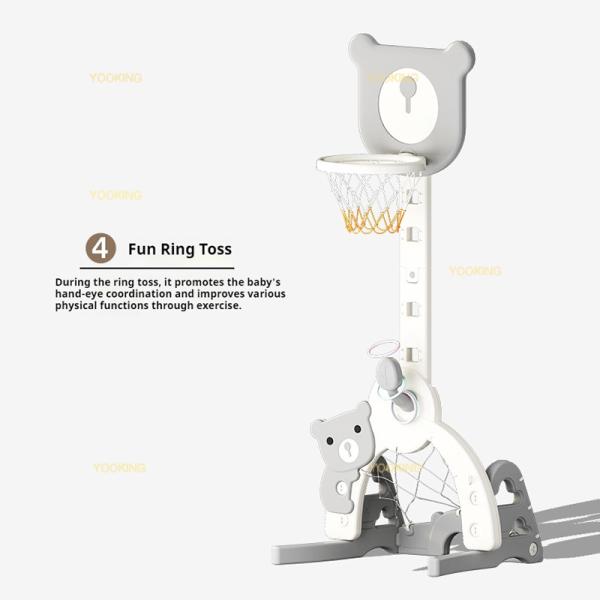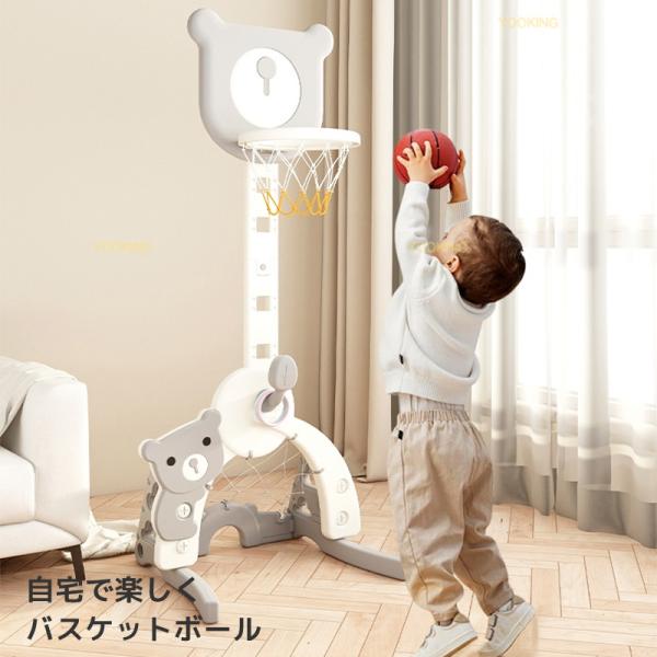キッズ バスケットゴール 4in1 スポーツセット 室内遊具 バスケットボール サッカー ゴルフ 輪投げ 高さ調節 子供用 知育玩具 クマさん