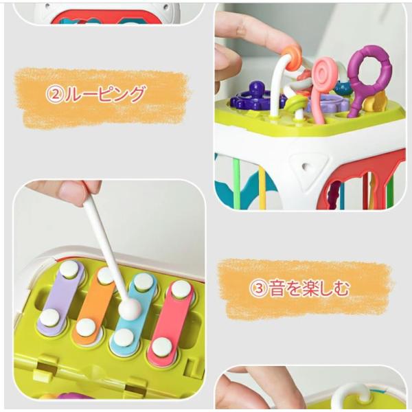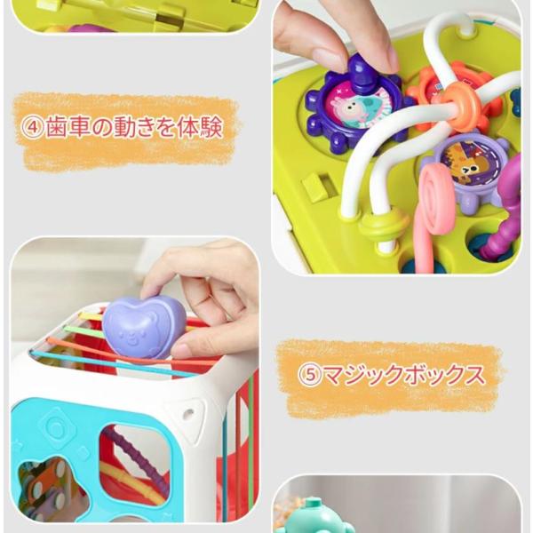 赤ちゃん おもちゃ マジックボックス 型はめあそび 歯車 スタッキングトイ 音が鳴る 楽器 ルーピング 握る 投げる プルストリング 誕生日 プレゼント 子供