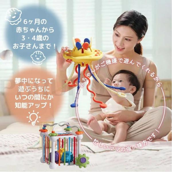 モンテッソーリ教育おもちゃ 知育玩具 赤ちゃん 紐 おもちゃ 音の出るおもちゃ 空飛ぶ円盤 プッシュポップ 男の子 女の子 積み木 積木 つみき ブロック 形合わせ