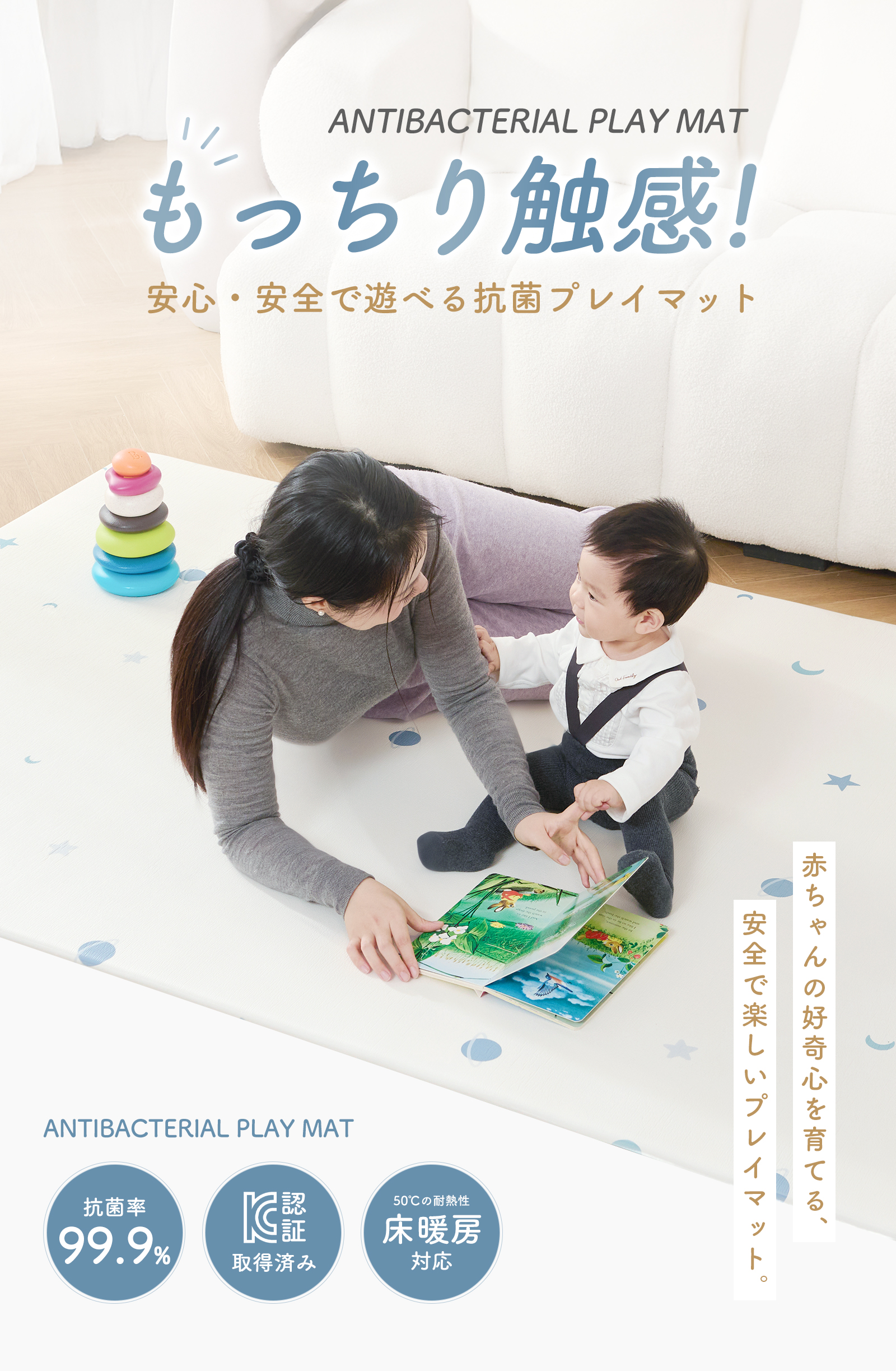GUMODE プレイマット 抗菌 ベビープレイマット もちもち シームレス リバーシブル PVCマット 床暖房対応 厚手 1.1cm 両面使用 防音 赤ちゃん 手入れ簡単 爆買