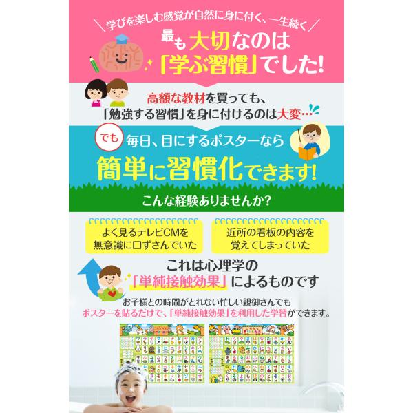 【送料無料】あいうえお表 ひらがな お風呂ポスター 知育玩具 【学ぶ習慣が身に付く!シリーズ】ルーティン博士の学習塾(2枚セット)