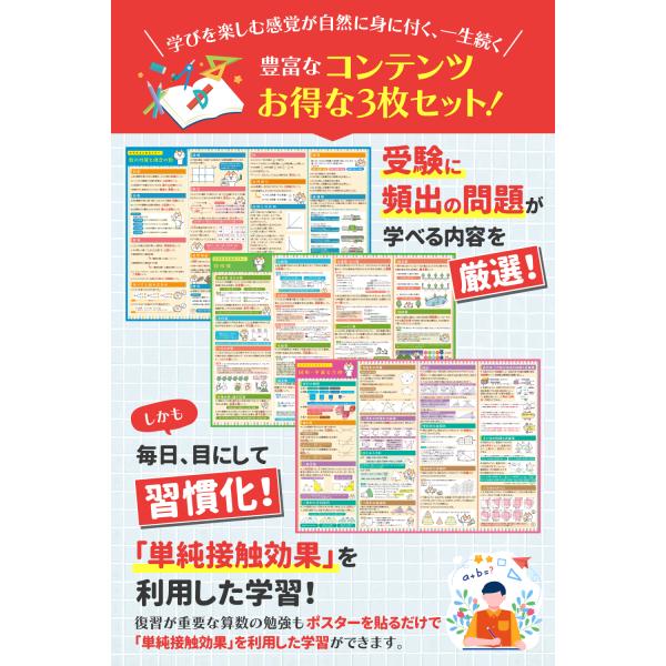 【送料無料】算数セット 中学受験 お風呂ポスター 小学生 【学ぶ習慣が身に付く!シリーズ】 ルーティン博士の学習塾(3枚セット)