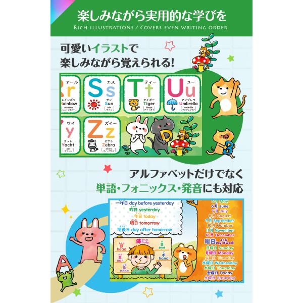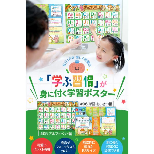 【送料無料】ひらがな あいうえお アルファベット 英語 お風呂ポスター 【豪華4枚セット!】 知育 ルーティン博士の学習塾