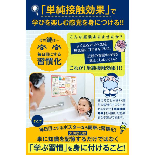 【送料無料】理科セット 中学受験 お風呂ポスター 小学生 【学ぶ習慣が身に付く!シリーズ】 ルーティン博士の学習塾(3枚セット)