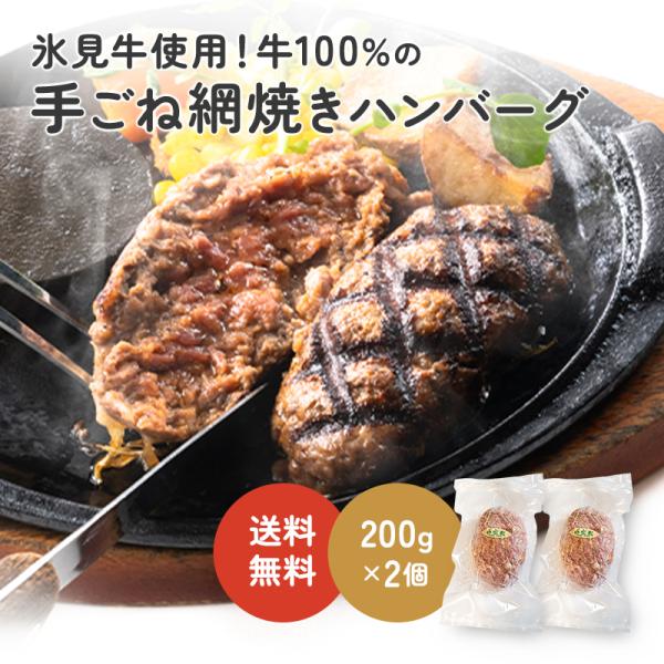 ハンバーグ ポイント消化 お試しセット 送料無料 氷見牛 網焼きハンバーグ 200g×2個