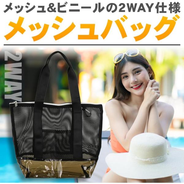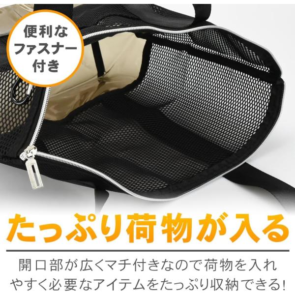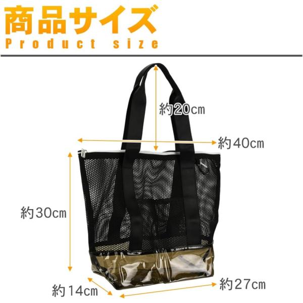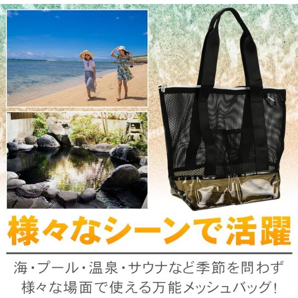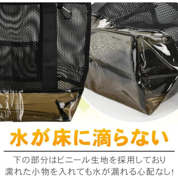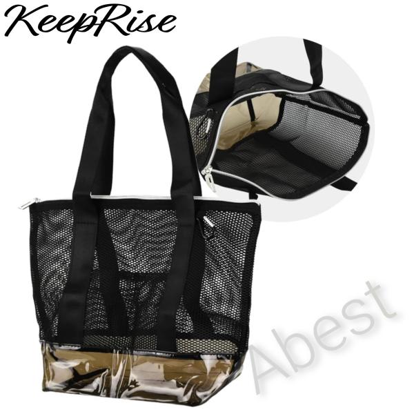 KeepRise メッシュバッグ ビーチバッグ ブラック 大容量 サウナ ジム ファスナー付き 通気性 ビニール底