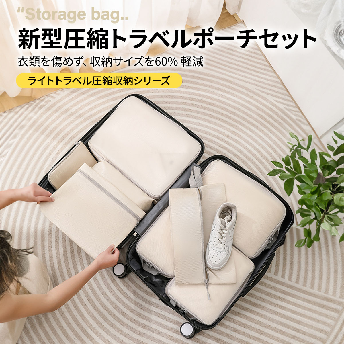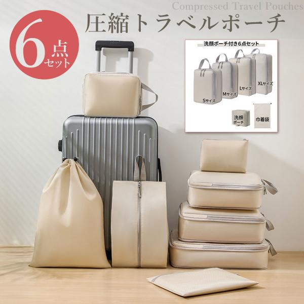トラベルポーチ 6点セット 洗顔ポーチ 旅行用圧縮袋 圧縮バッグ 衣類圧縮 収納ポーチ ファスナー圧縮 衣類スペース 軽量 出張