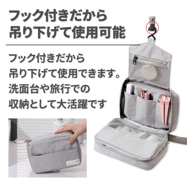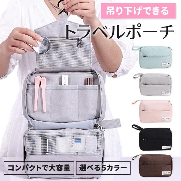 トラベルポーチ 吊り下げ 壁掛け 旅行 収納 ポーチ 大容量 トラベル 洗面 洗面用具 フック ハンガー 立てる収納 かわいい おしゃれ レディース 化粧ポーチ