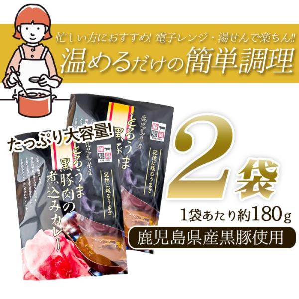 送料無料 鹿児島 黒豚 煮込みカレー 2袋 黒豚カレー 濃厚 甘口よりの中辛 お試し 常温保存 レトルト 惣菜 国産 180g ネコポス便