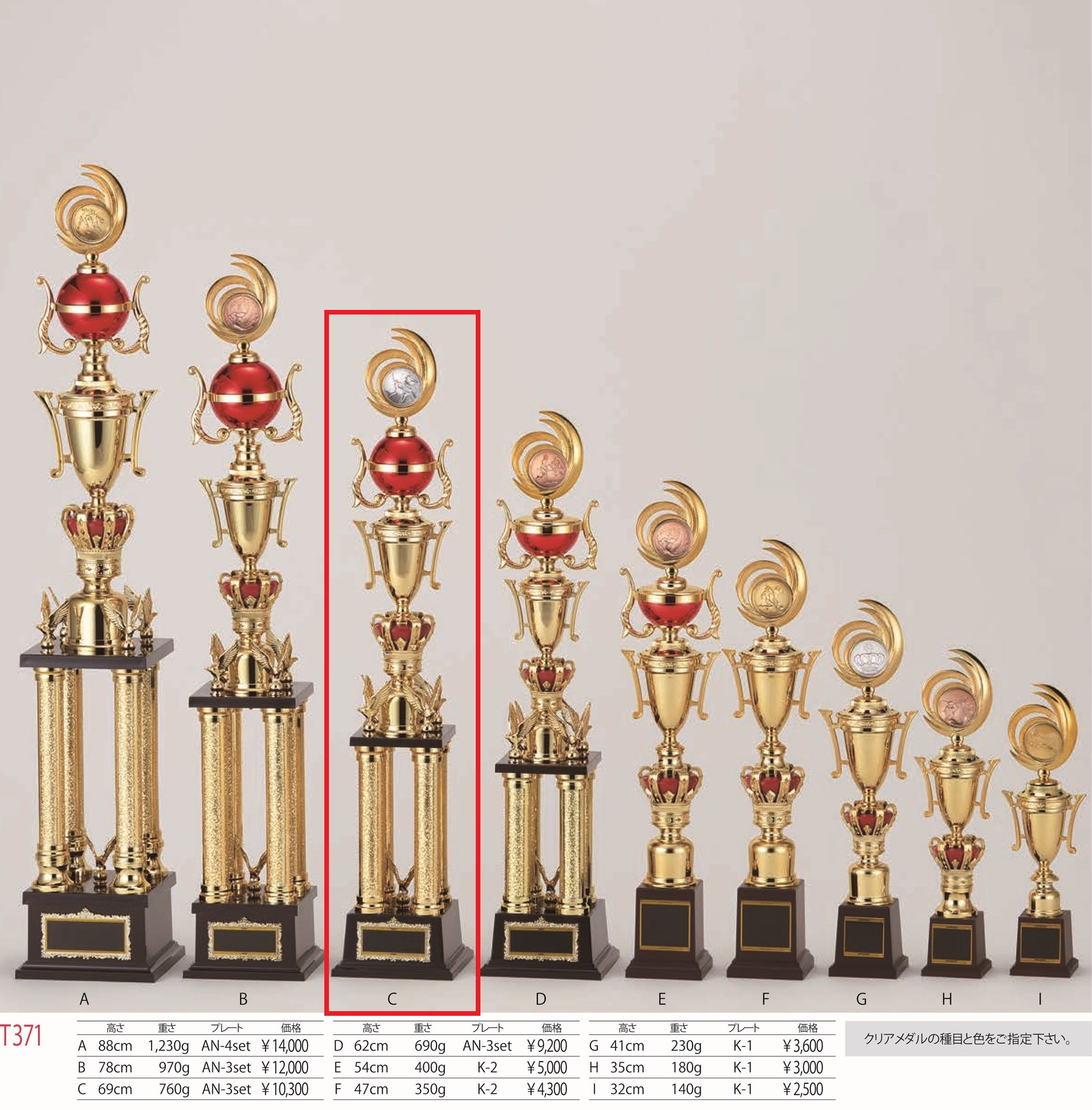 [T371C/N-3]トロフィー/4本柱/先端は樹脂製メダル/高さ69cm