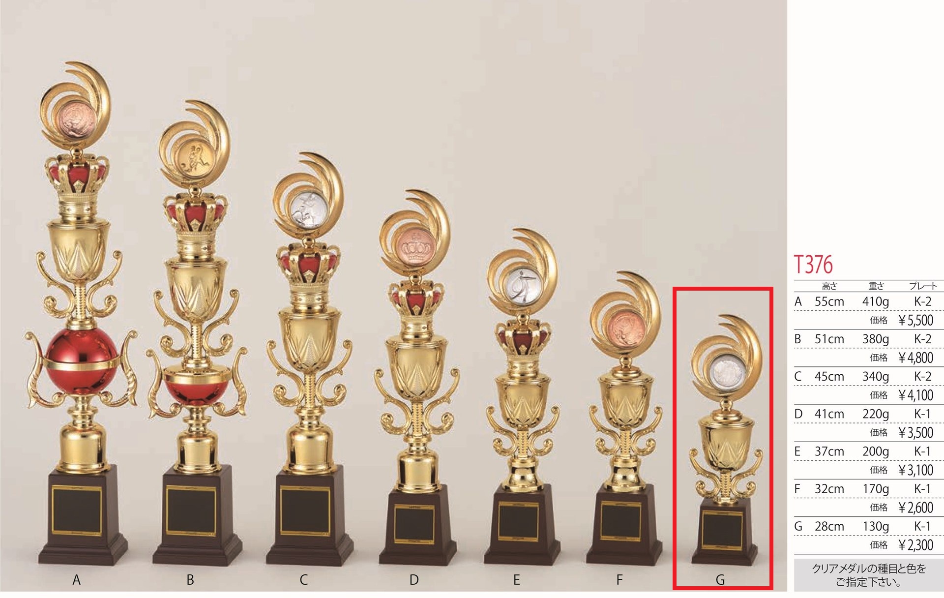 [T376G/K-1]トロフィー/1本柱/先端は樹脂製メダル/高さ28cm