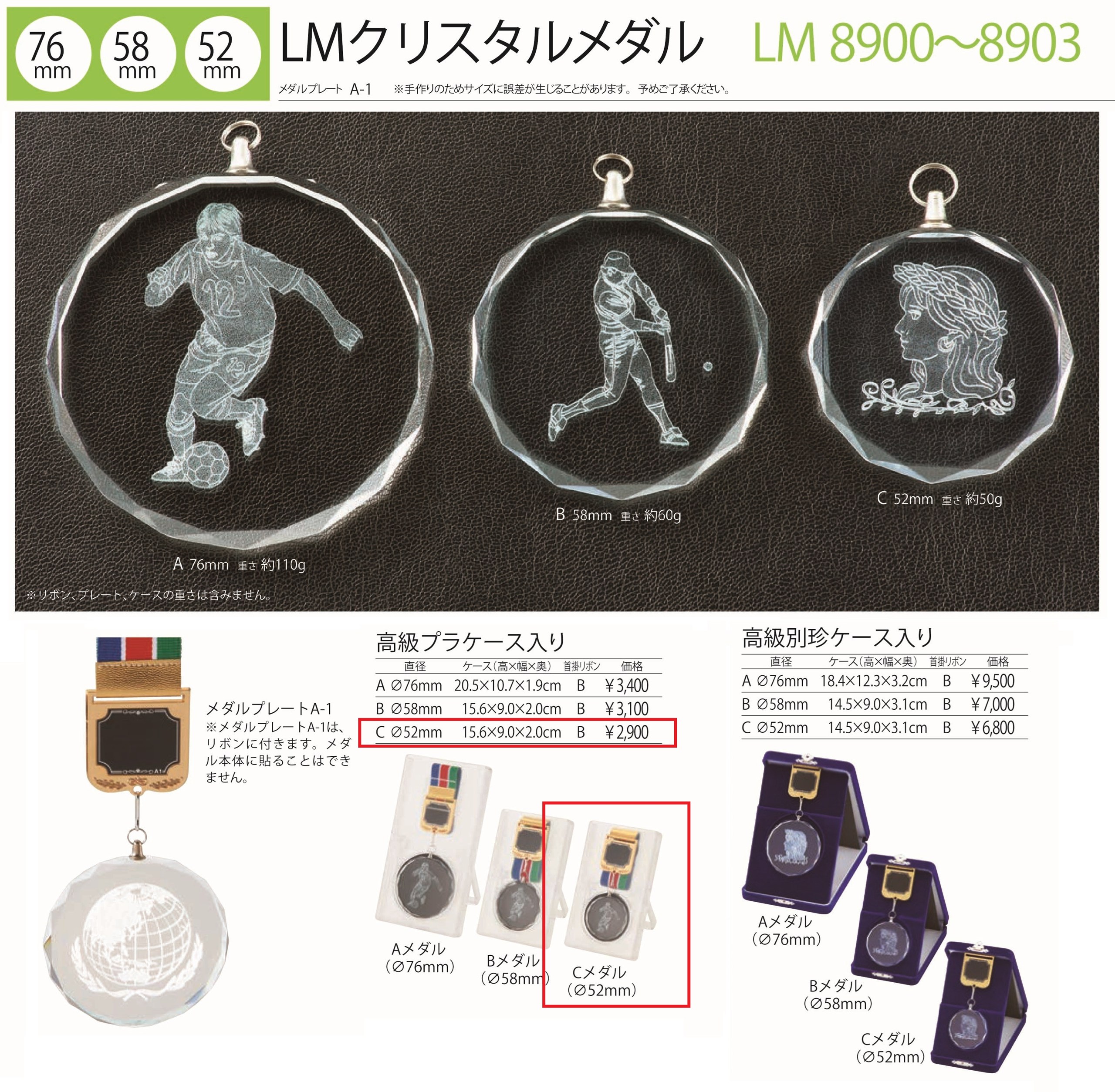[LMCR52B/A-1]52mmクリスタルメダル/高級プラケース