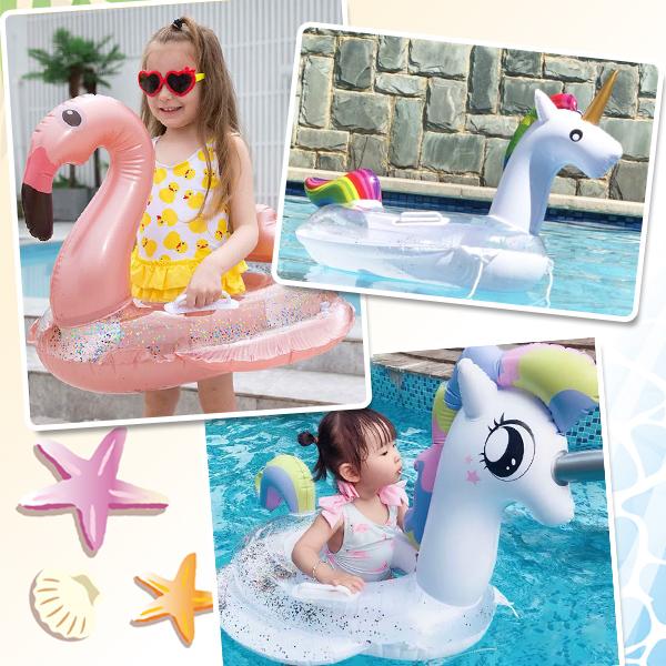 ラメ入り キッズフロート 持ち手付き 足入れ付き 浮き輪 浮輪 取っ手付き ハンドル付き うきわ 子供 ユニコーン フラミンゴ 海 プール 赤ちゃん ベビーフロート