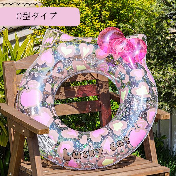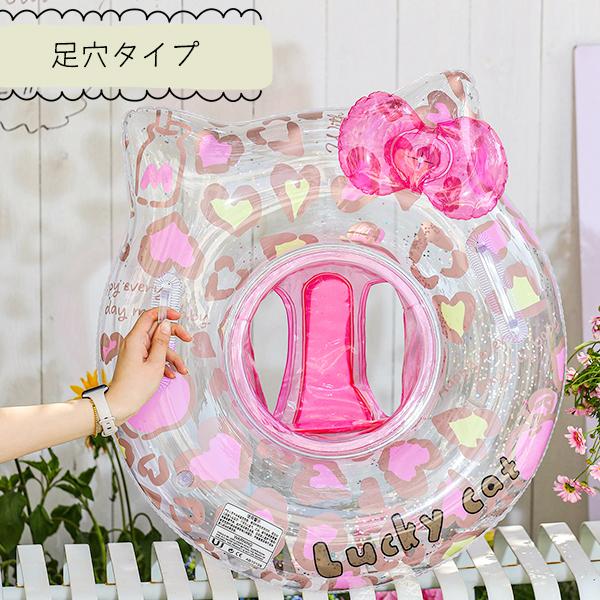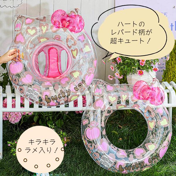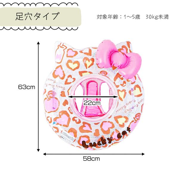 ハローキティ (ヒョウ柄) スイムリング 足穴 O型 浮き輪 キティ 子供 キッズ 女の子 フロート 浮輪 足入れ プール 取っ手付き 水遊び リボン ラメ レパード