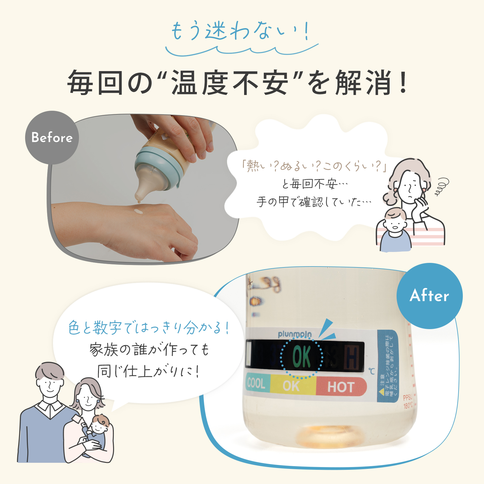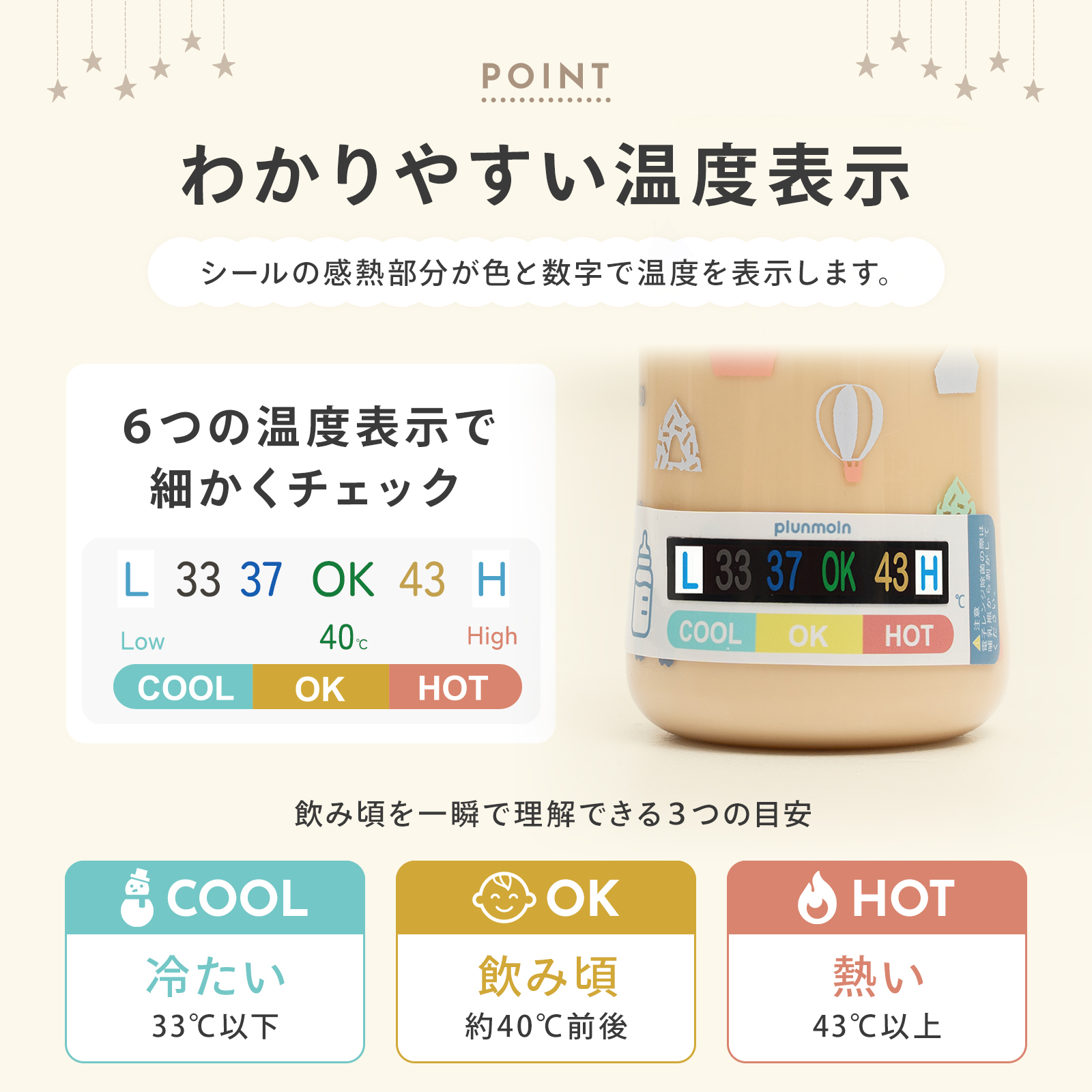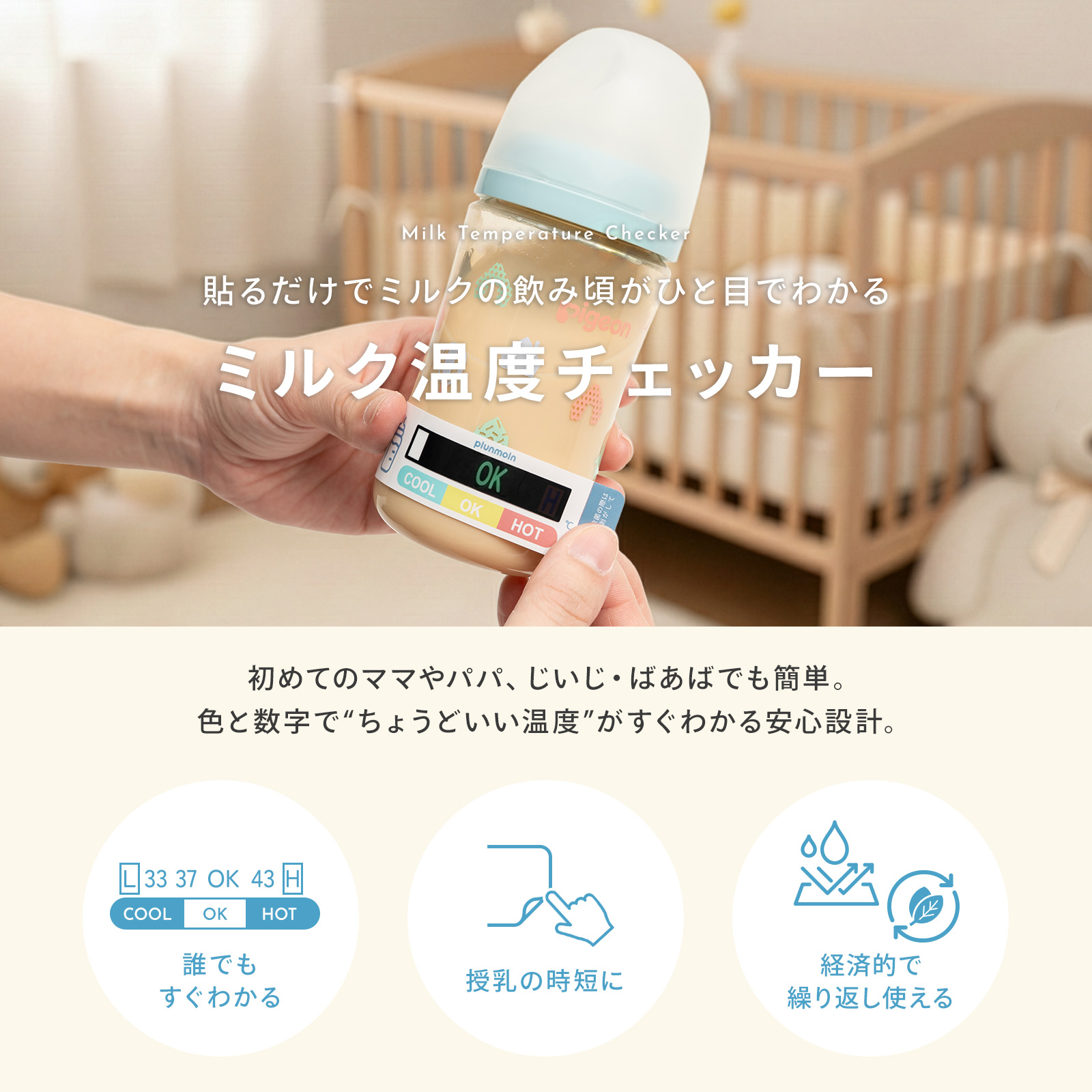 ミルク温度チェッカー 哺乳瓶 貼るだけ 簡単 温度表示 シール ミルク 飲み頃 OK表示 数字 色でわかる 防水 くり返し使える 新生児 授乳グッズ 夜間授乳 新生児